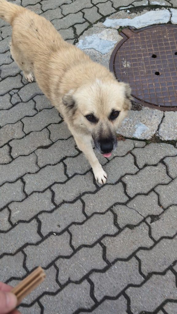 Diesen süßen Kerl habe ich mit seinen Kumpels an einer Autowaschanlage angetroffen. Die zwei kleinen Schwarzen waren sehr verängstigt und es war kaum möglich, ihnen näherzukommen. Der große helle Wuschel hatte auch Angst, war aber etwas zutraulicher. Ich habe ihnen Futter, Wasser und ein paar Kaustangen dagelassen.