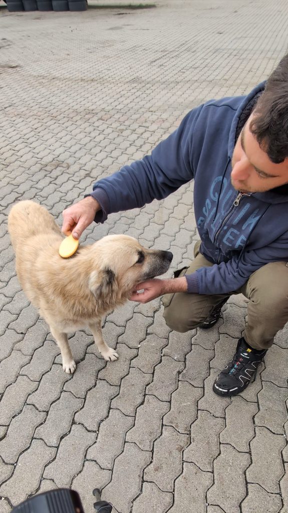 Da der Hund, der jetzt Nemo heißt 🙂 ziemlich dreckig war, habe ich mir ein ruhiges Plätzchen gesucht und ihn in Ruhe gebürstet, verfilztes Fell am Schwanz und Steine unter seinen Pfoten entfernt. Ich dachte mir dann: „Wenn nicht dieser Hund, wer dann soll vermittelbar sein?“